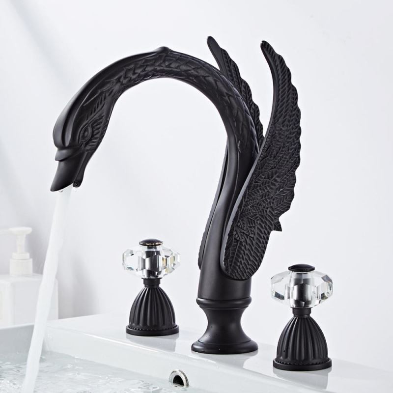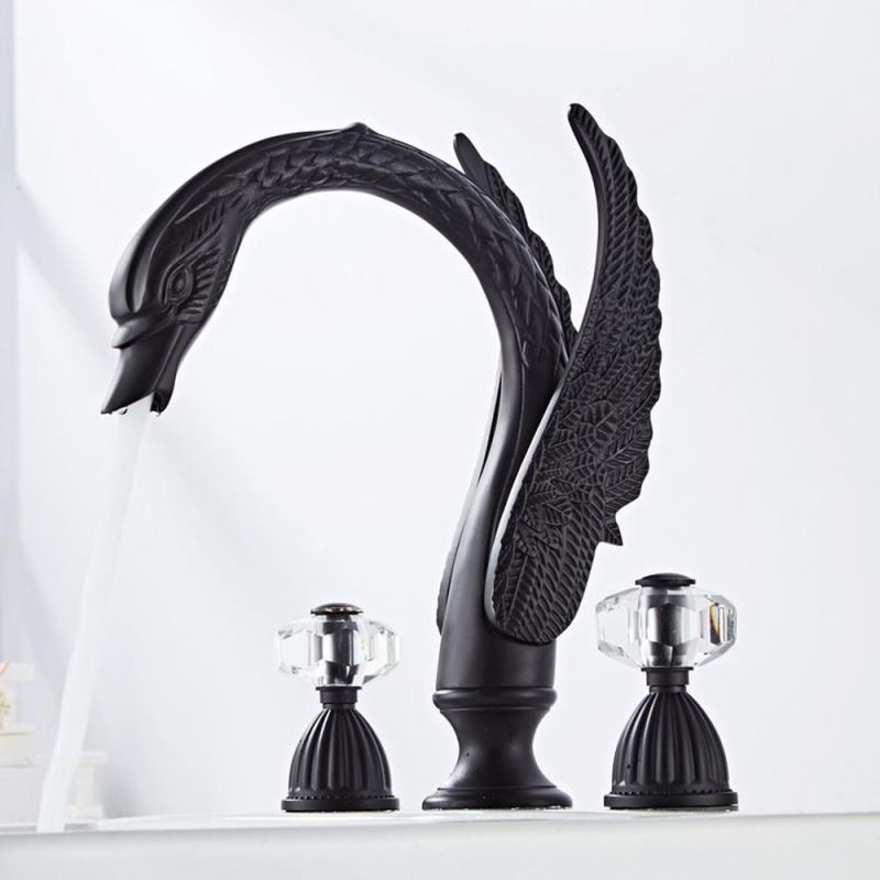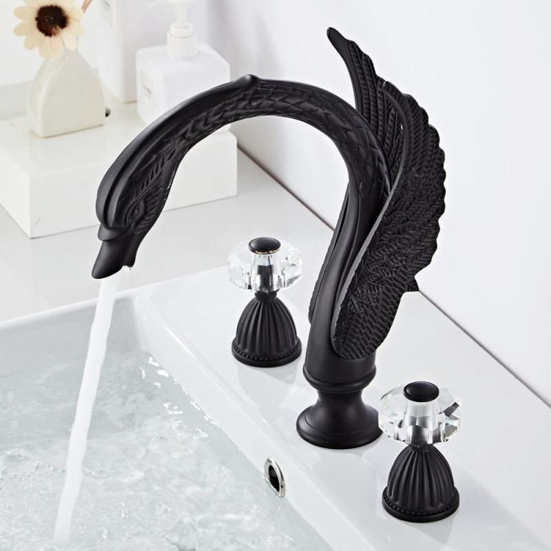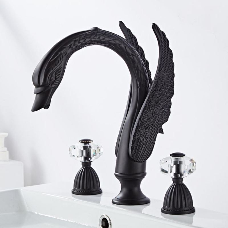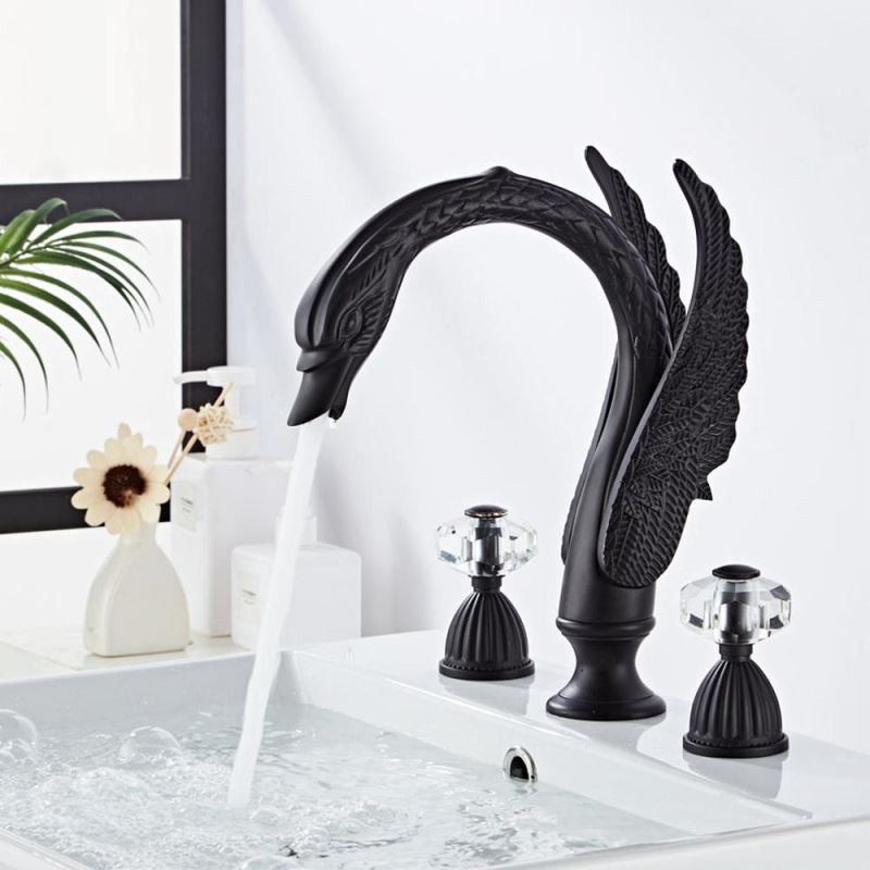 South African Premium Swan Shape 3pcs Widespread Bathroom Sink Tap with 2 Handles Vanity Basin Mixer Tap