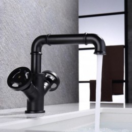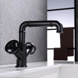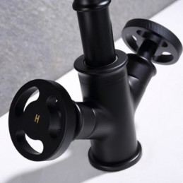 South African Premium Industrial Style Brass Countertop Deck Mounted Black Basin Tap