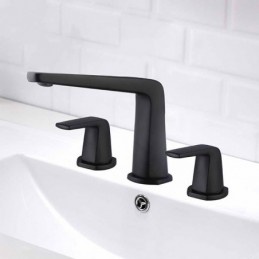 South African Premium Black Double Handles Brass Basin Mixer Tap for Bathroom Countertop