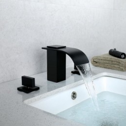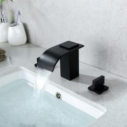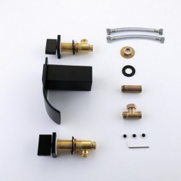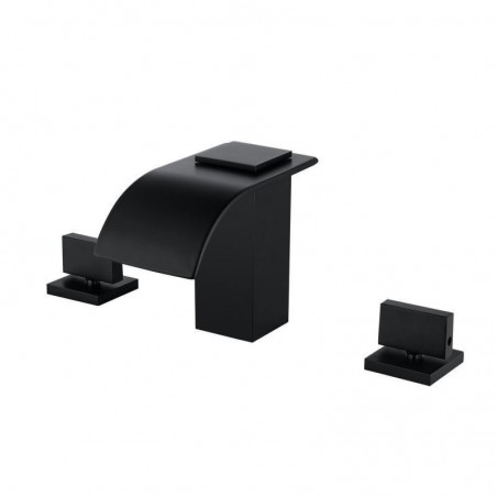 South African Premium Black Brass Split Bathtub Tap with Double Handles, Waterfall Bathtub Tap