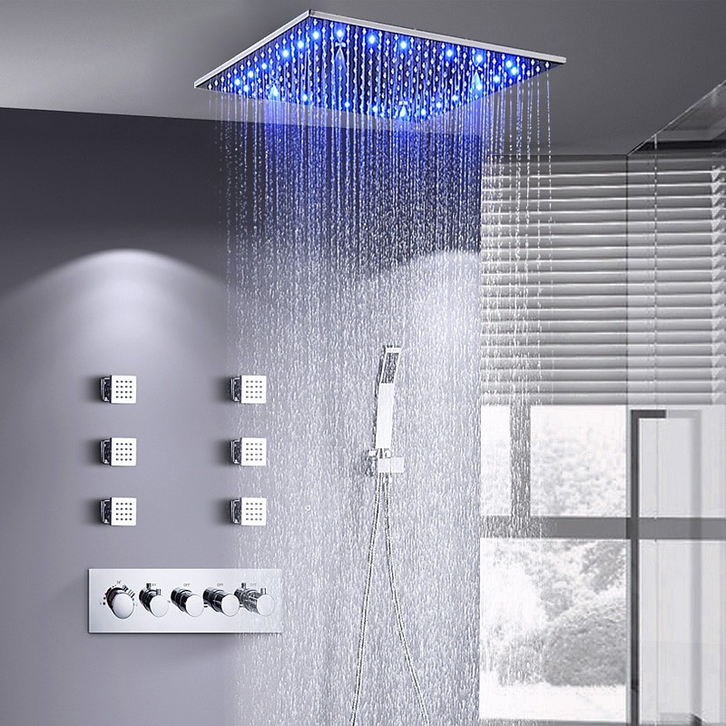 South African Premium Complete Spray Rainfall Shower Head Ceiling Mounted LED 6 Body Jet Message Shower Head System Shower Tap