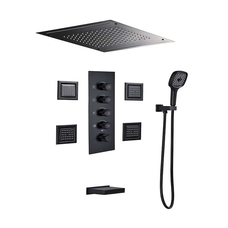 Style:Contemporary,Features:Rainfall Shower,Faucet Type:Rainfall Shower Head System,Thermostatic Mixer valve,Installation Type:Mount Inside,Valve Type:Brass Valve,Finish:Painted Finishes,