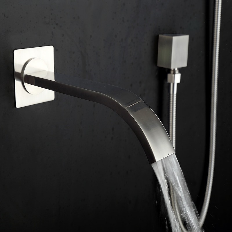 Style:Contemporary,Features:Rainfall,Faucet Type:Shower Set,Installation Type:Wall Mounted,Valve Type:Ceramic Valve,Finish:Nickel Brushed,Installation Holes and Handles:Two Handles Five Holes,Special selected products:COD,