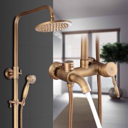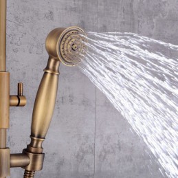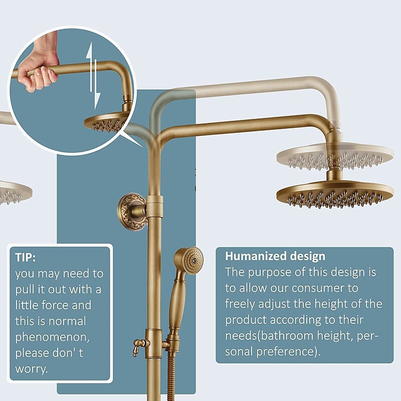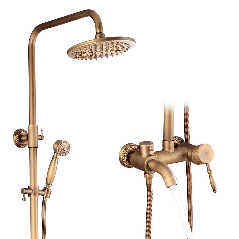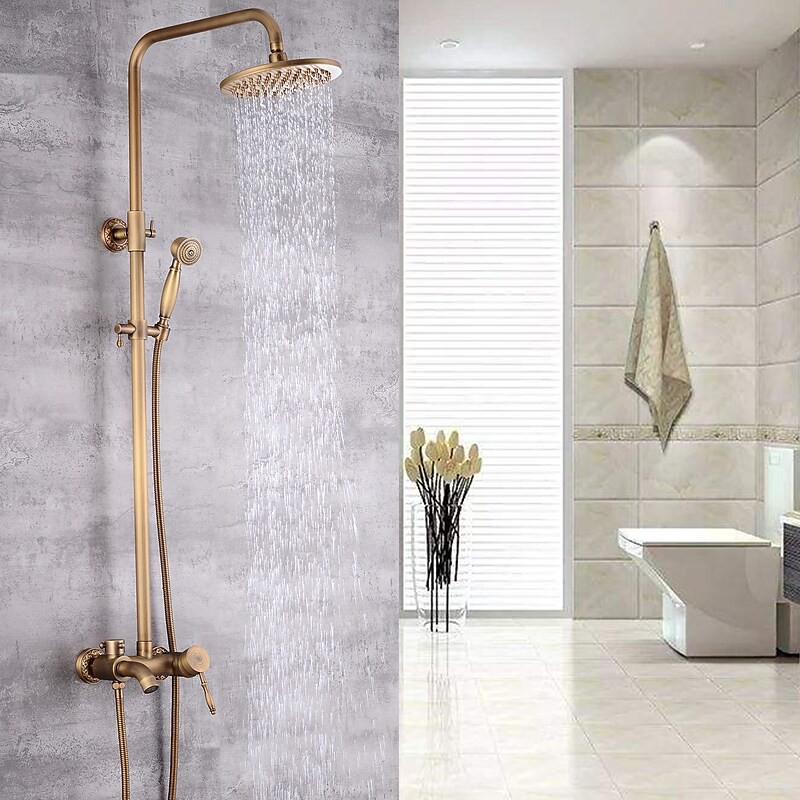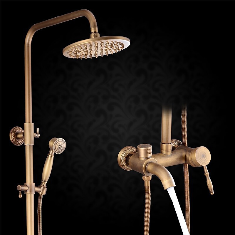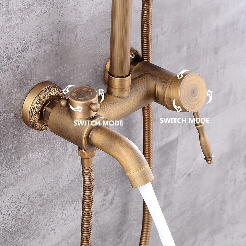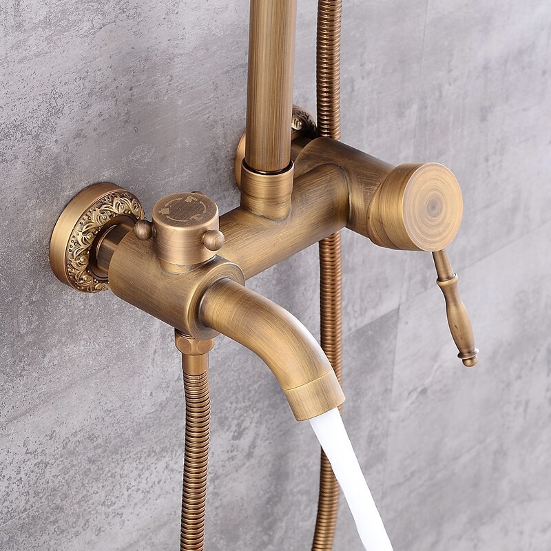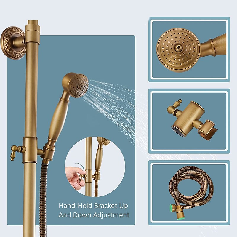 Style:Vintage Style,Country,Features:pullout,Handshower Included,Waterfall,Faucet Type:Shower System,Installation Type:Mount Outside,Cold and Hot Switch:Yes,Valve Type:Ceramic Valve,Finish:Antique Brass,