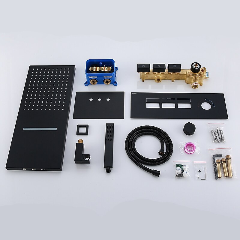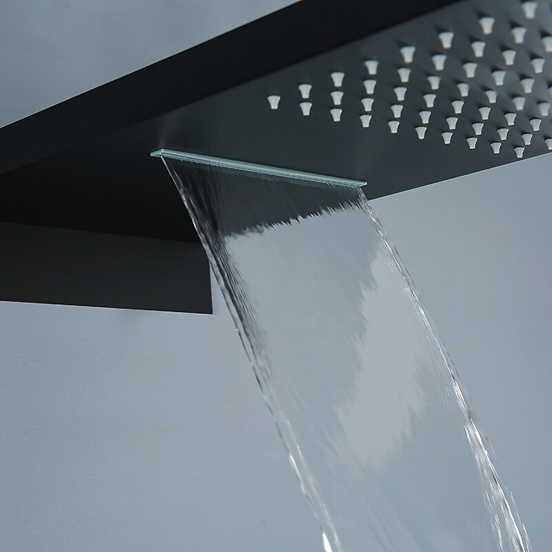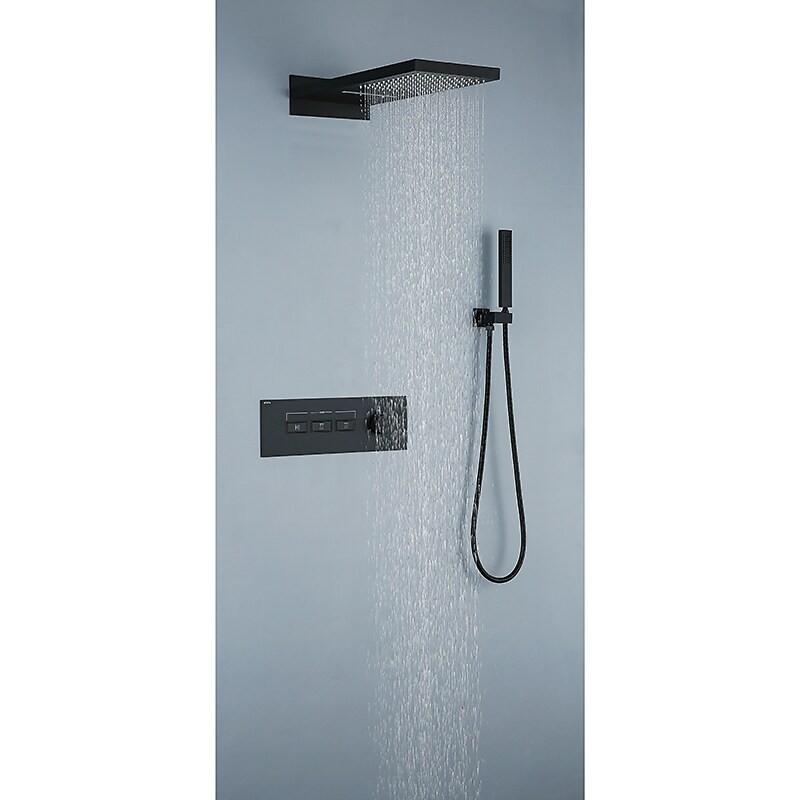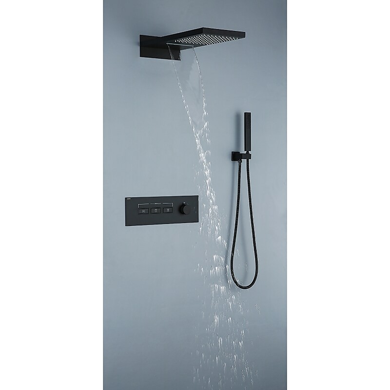 Style:Contemporary,Features:Multi Spray Shower,Handshower Included,Waterfall,Faucet Type:Rainfall Shower Head System,Thermostatic Mixer valve,Installation Type:Mount Inside,Valve Type:Brass Valve,Finish:Painted Finishes,