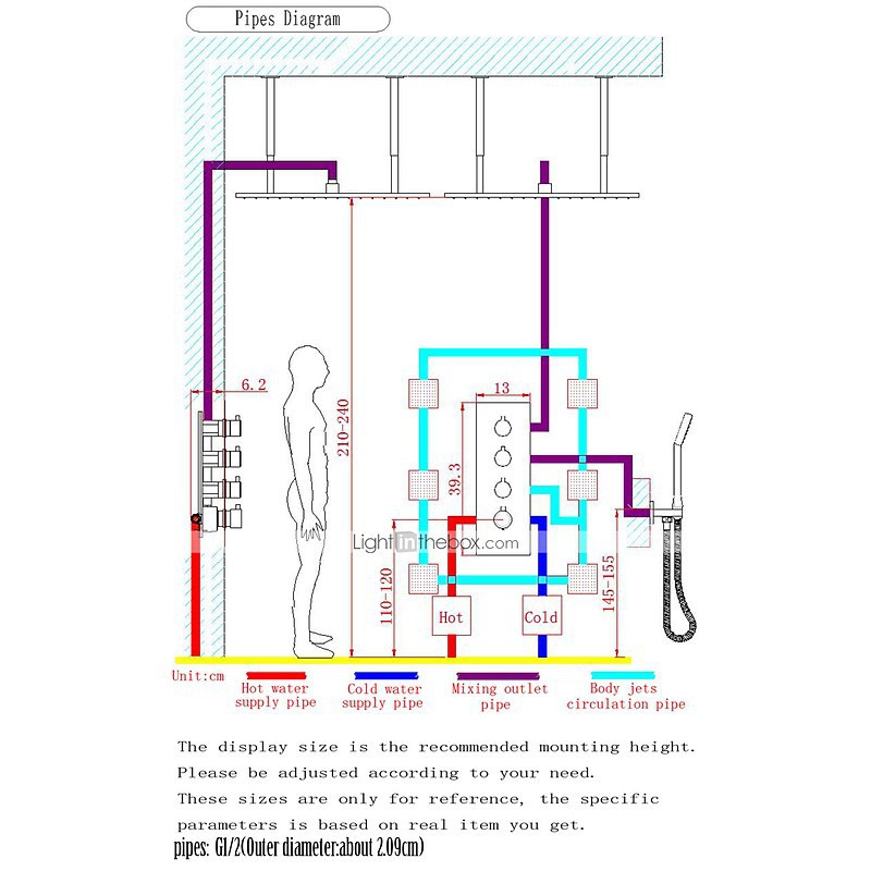 LED Power Source:Water Flow,LED turns Blue between (¡ãC):0-29,LED turns Green between (¡ãC):30-39,LED turns Red between (¡ãC):40-49,