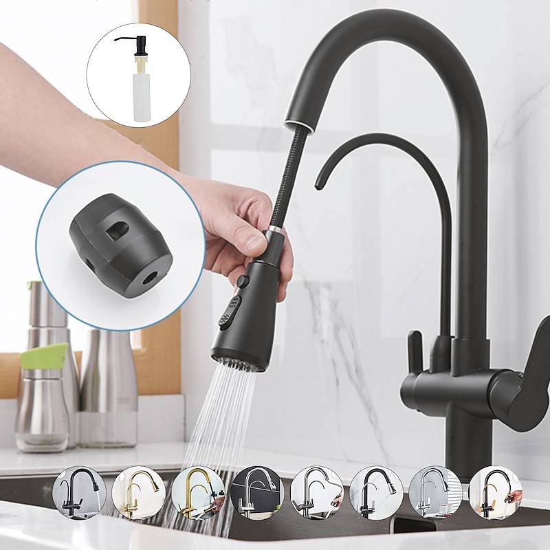 Type:Pull-out/Pull-down,Style:Antique,Modern Contemporary,Features:Multi-function,Pull out,FaucetSet,Rotatable,Faucet Type:Kitchen faucet,Installation Type:Centerset,Cold and Hot Switch:Yes,Valve Type:Ceramic Valve,Finish:Antique Brass,Chrome,Nickel Brushed,Oil-rubbed Bronze,Installation Holes and Handles:Two Handles Two Holes,Special selected products:COD,