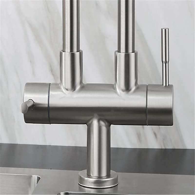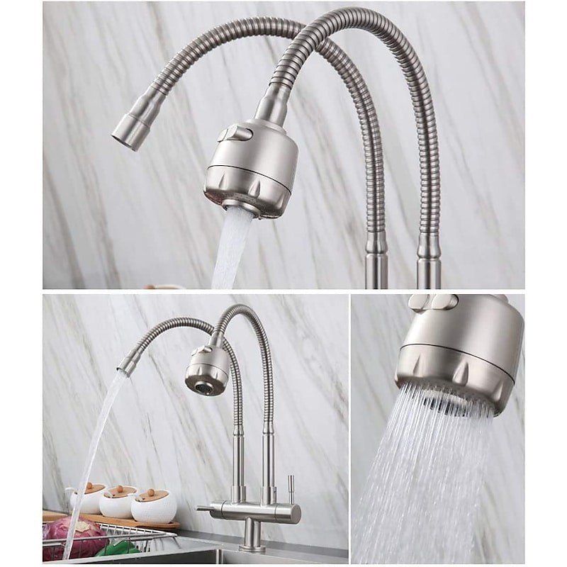 Type:Standard Spout,Style:Contemporary,Features:Rotatable,Faucet Type:Kitchen faucet,Installation Type:Centerset,Flow Rate (L/min):0.2,Finish:Stainless Steel,Installation Holes and Handles:Two Handles One Hole,Water Pressure (Mpa):0.02-0.7,