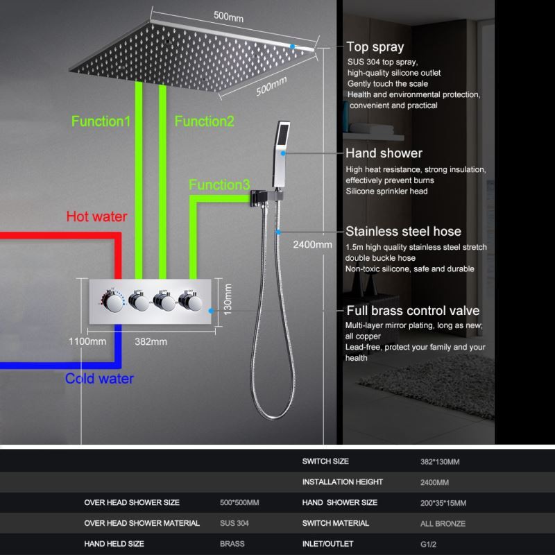 | Shower Head Measurement | 19.69*19.69'' (500mm*500mm) |
