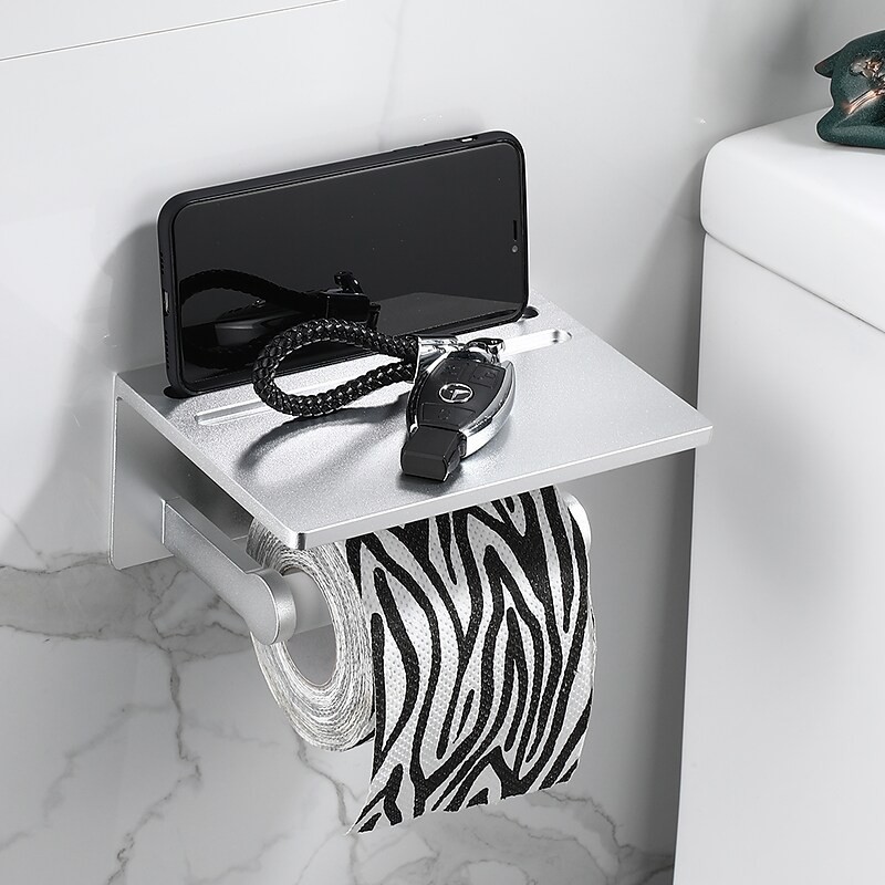 South African Premium Toilet Paper Holder Silver Black Matte Roll Paper Holder Multi Functional Paper Towel Holder